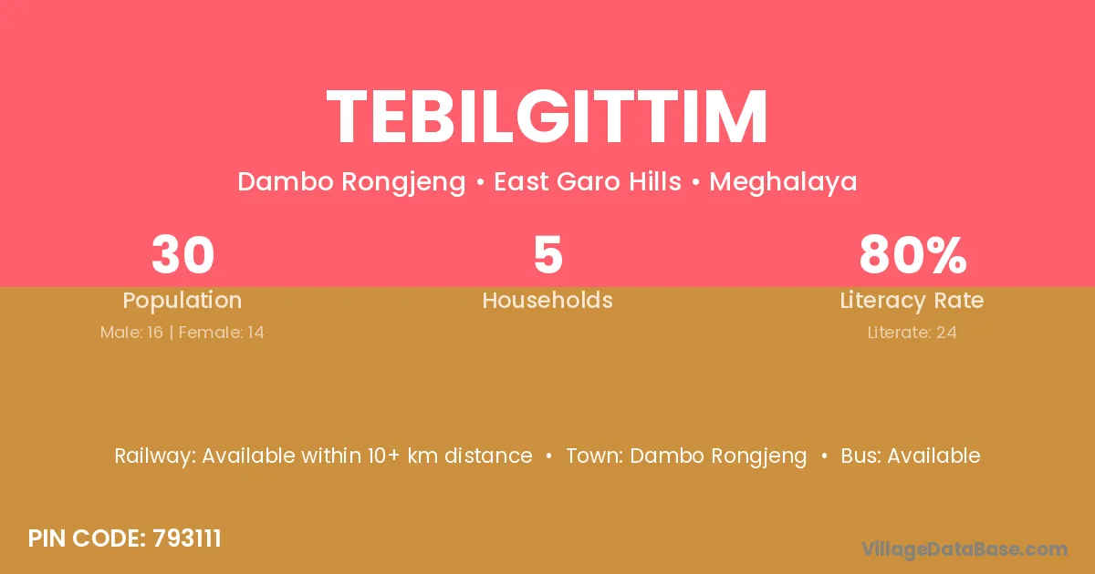 According to Census 2011 information, the village code of Tebilgittim village is 793111.