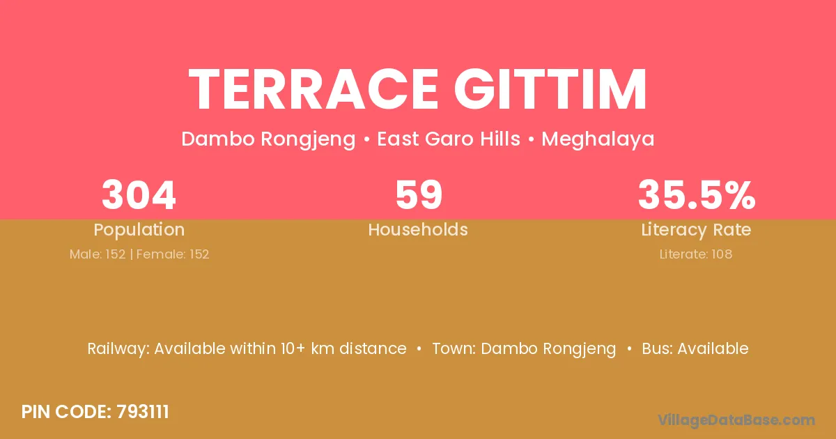 According to Census 2011 information, the village code of Terrace Gittim village is 793111.