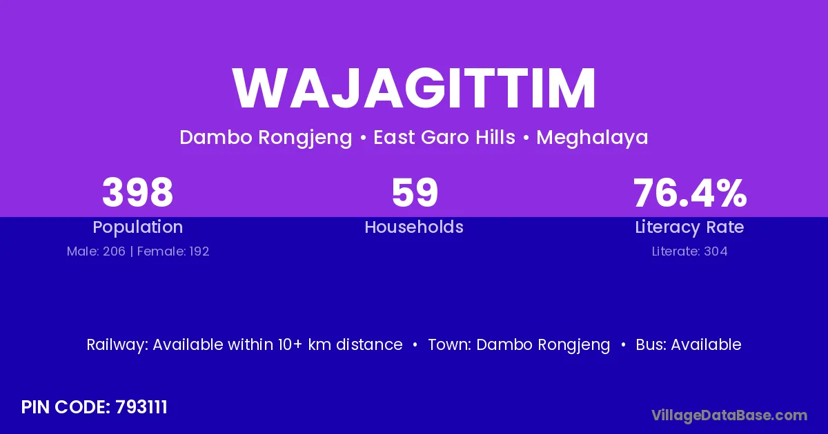 Wajagittim village has a total population of 398 people, of which 206 are males and 192 are females.