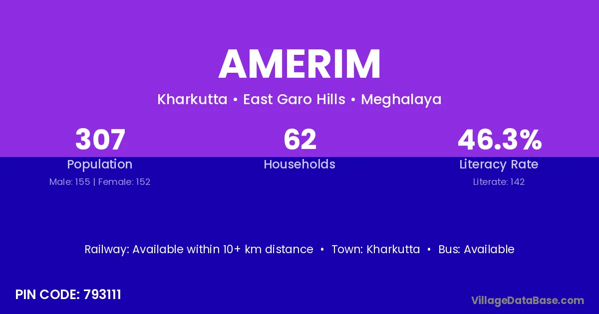 Kharkutta is the nearest town to Amerim village for major economic activities