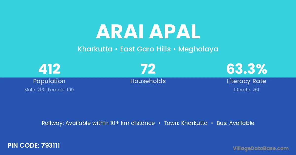 Kharkutta is the nearest town to Arai Apal village for major economic activities