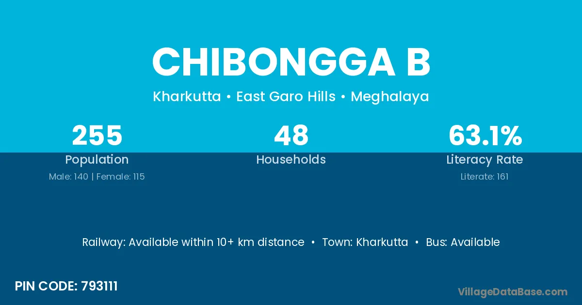 Kharkutta is the nearest town to Chibongga B village for major economic activities
