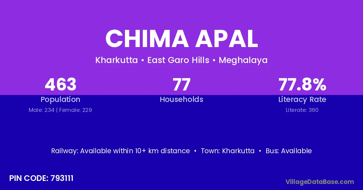 Kharkutta is the nearest town to Chima Apal village for major economic activities