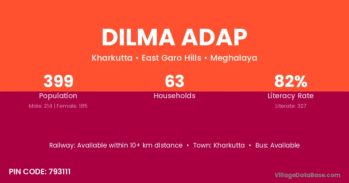 Kharkutta is the nearest town to Dilma Adap village for major economic activities