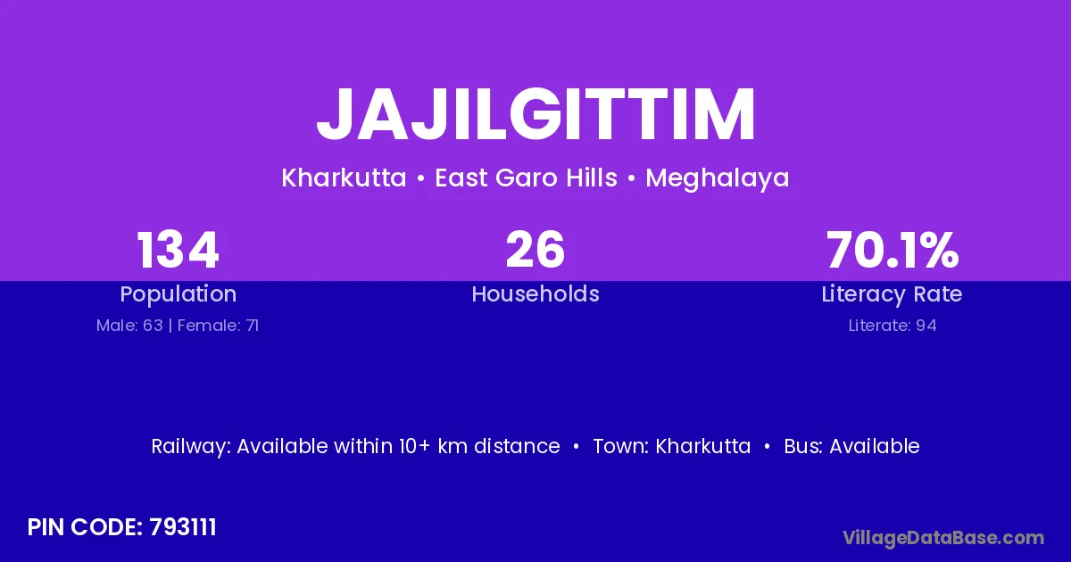 Kharkutta is the nearest town to Jajilgittim village for major economic activities