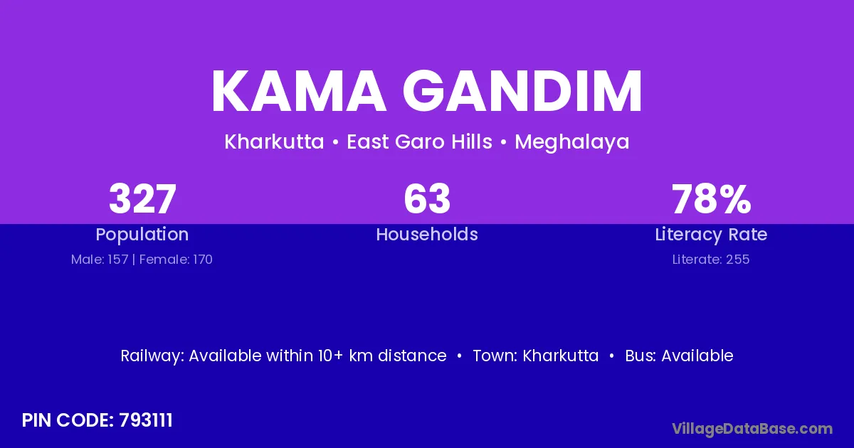 Kharkutta is the nearest town to Kama Gandim village for major economic activities