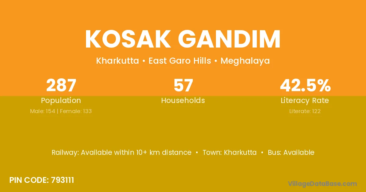 Kharkutta is the nearest town to Kosak Gandim village for major economic activities
