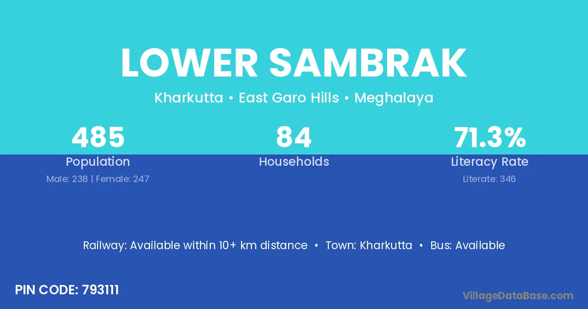 Kharkutta is the nearest town to Lower Sambrak village for major economic activities