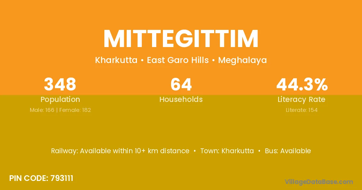 Kharkutta is the nearest town to Mittegittim village for major economic activities