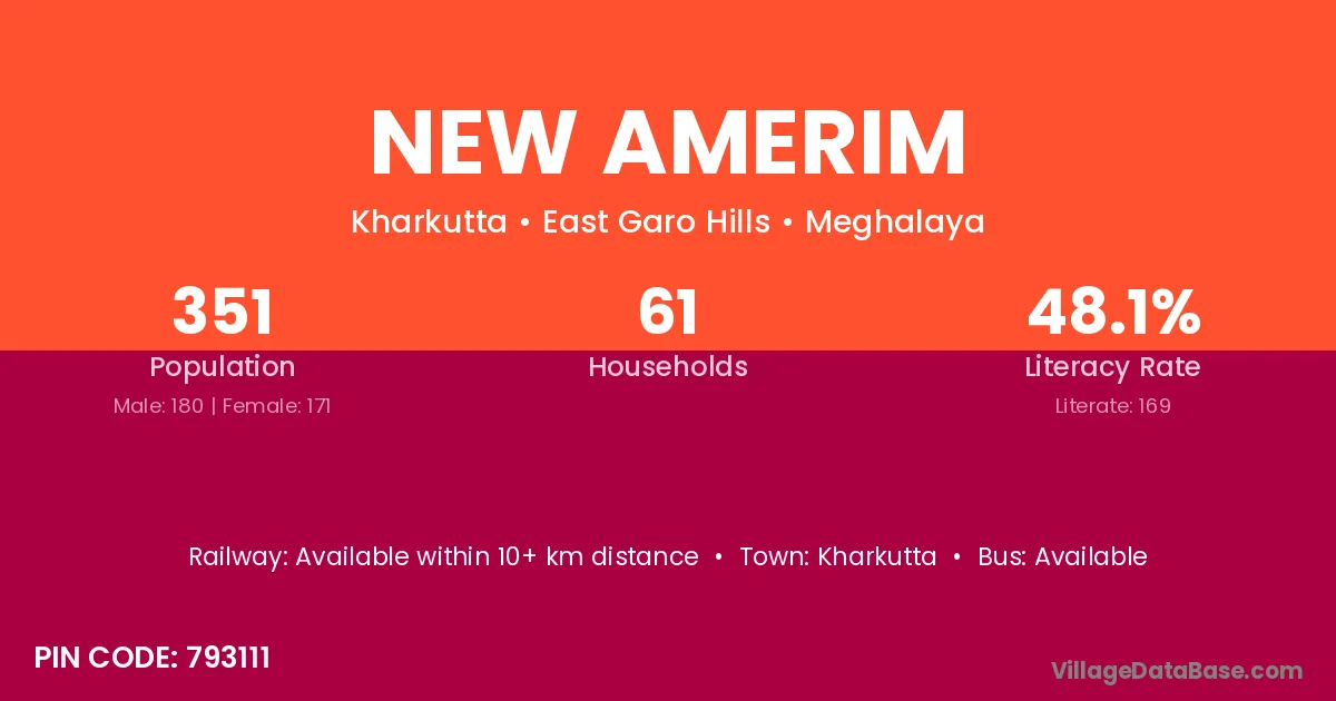 New Amerim village has a total population of 351 people, of which 180 are males and 171 are females.