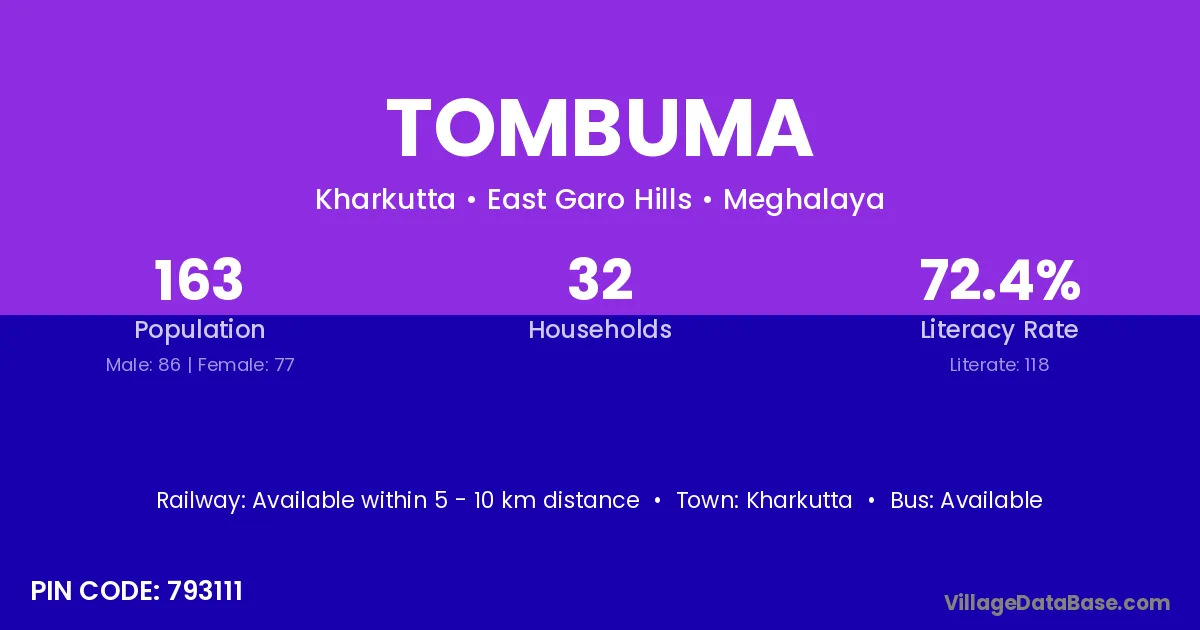 Kharkutta is the nearest town to Tombuma village for major economic activities