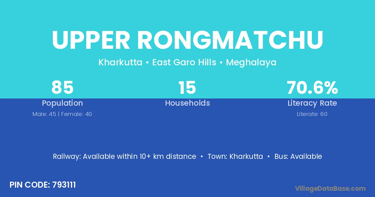 Upper Rongmatchu village has a total population of 85 people, of which 45 are males and 40 are females.