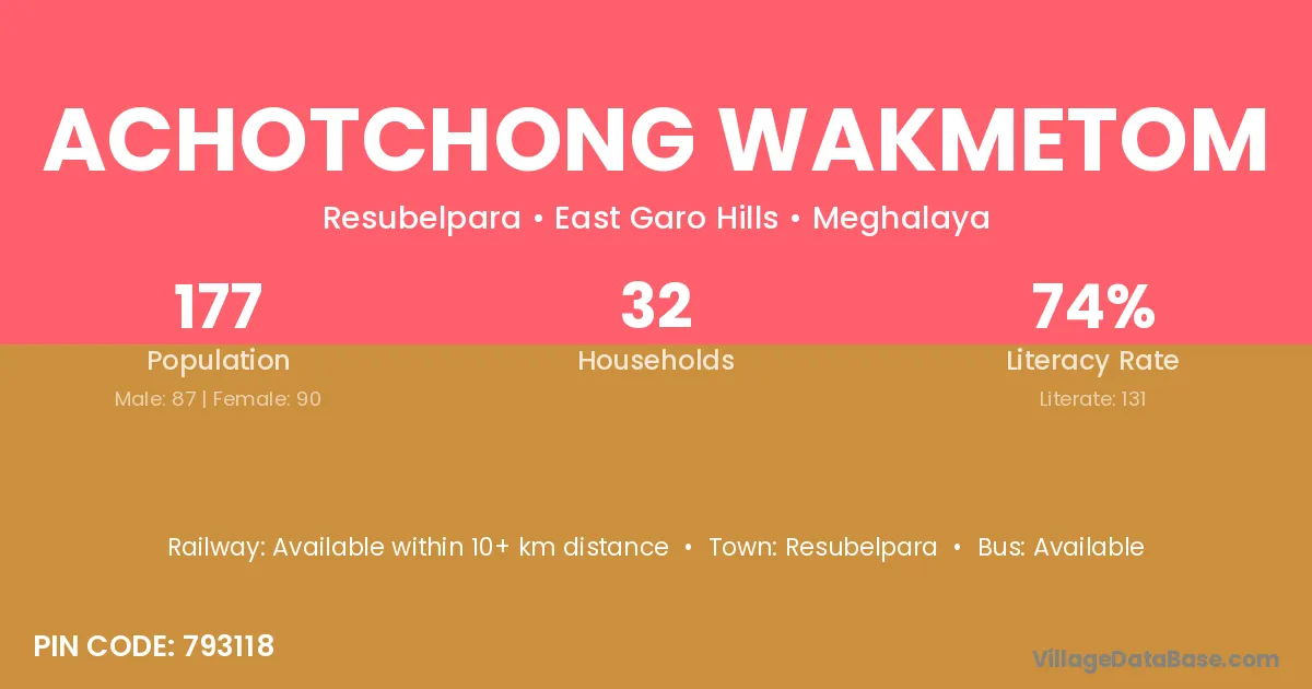 Resubelpara is the nearest town to Achotchong Wakmetom village for major economic activities