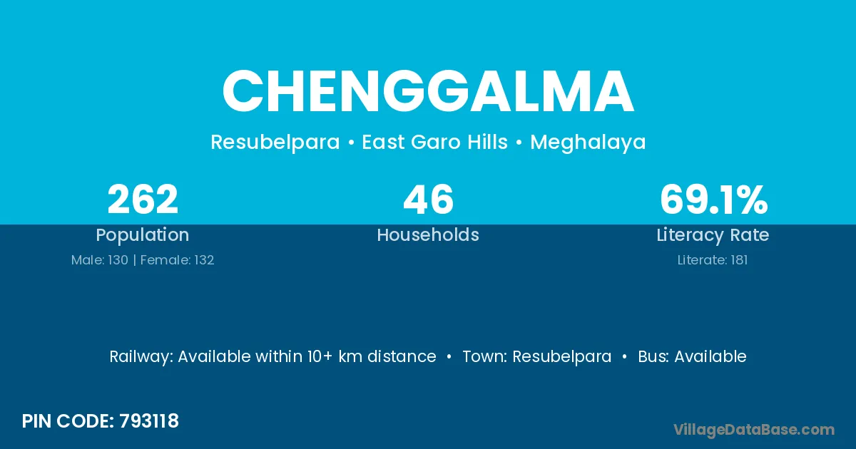Resubelpara is the nearest town to Chenggalma village for major economic activities
