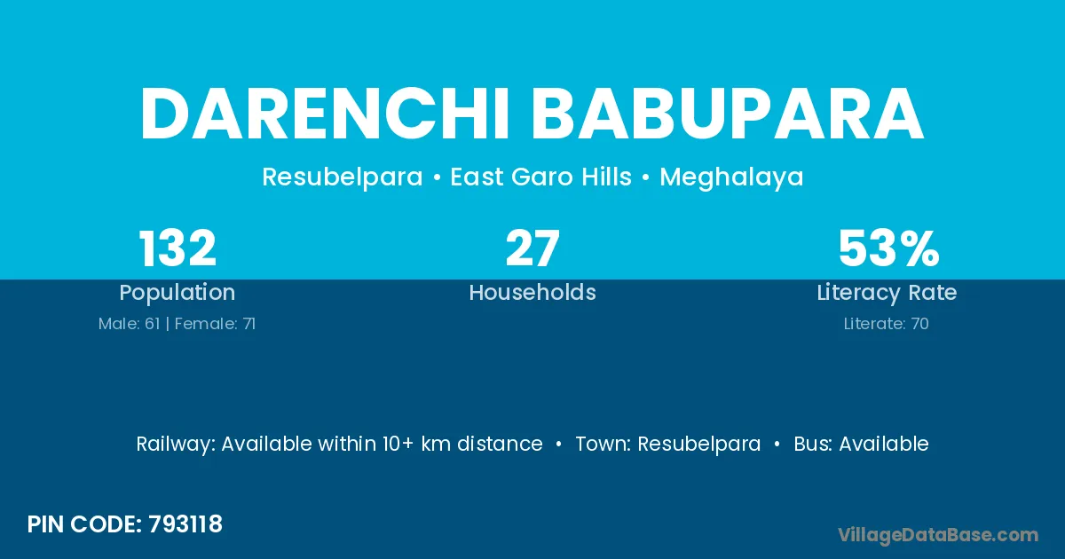 Resubelpara is the nearest town to Darenchi Babupara village for major economic activities