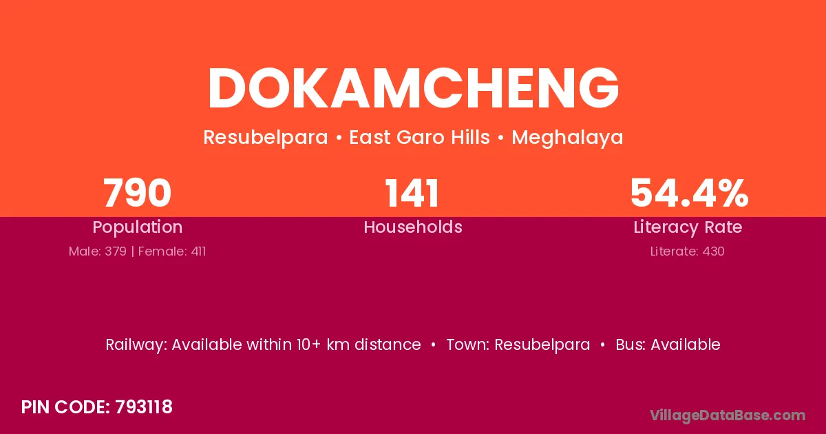 Resubelpara is the nearest town to Dokamcheng village for major economic activities