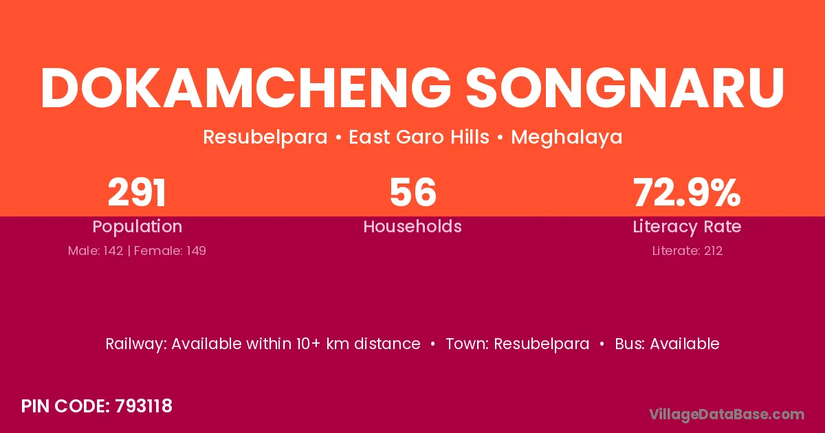 Resubelpara is the nearest town to Dokamcheng Songnaru village for major economic activities