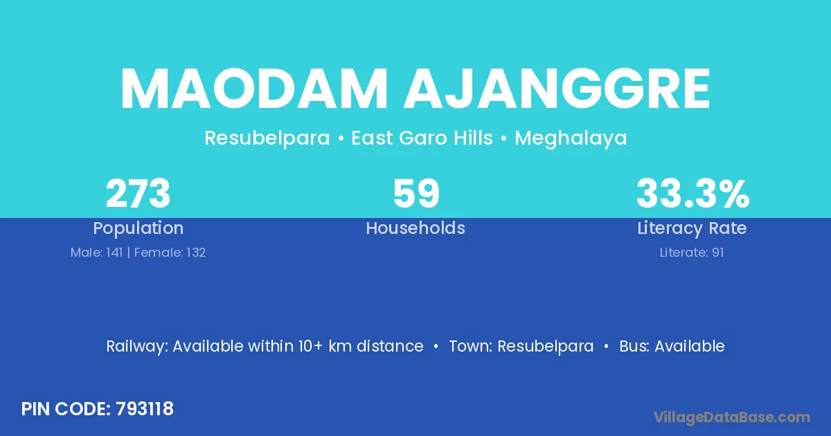 Maodam Ajanggre village has a total population of 273 people, of which 141 are males and 132 are females.