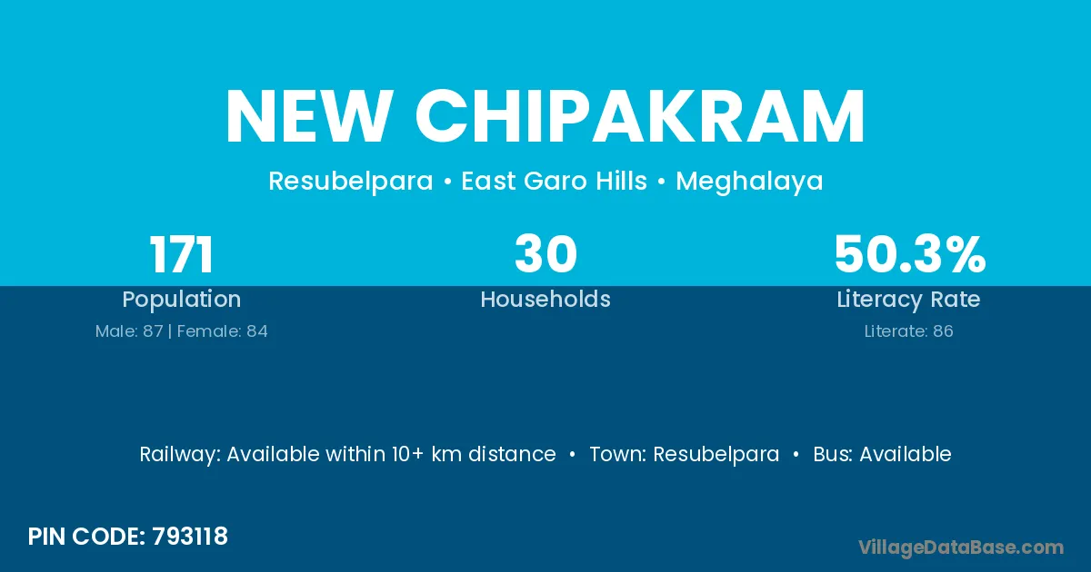 Resubelpara is the nearest town to New Chipakram village for major economic activities