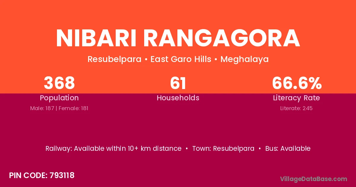 Resubelpara is the nearest town to Nibari Rangagora village for major economic activities