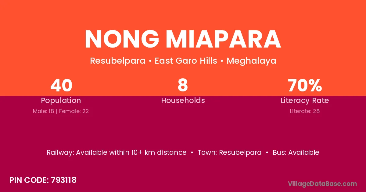 Resubelpara is the nearest town to Nong Miapara village for major economic activities