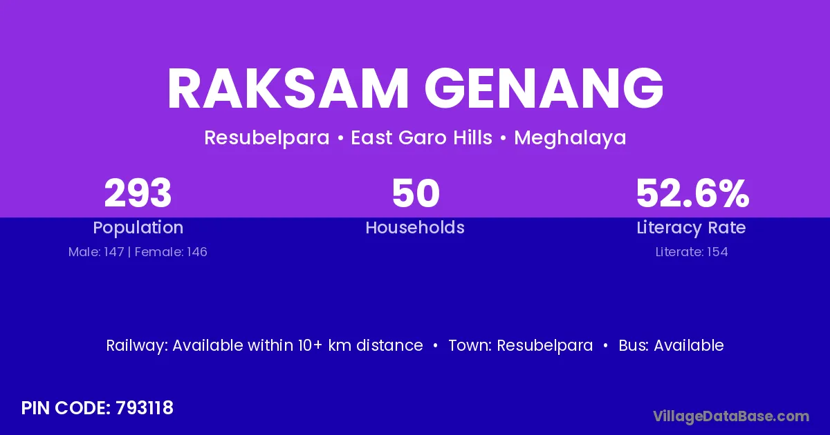 Resubelpara is the nearest town to Raksam Genang village for major economic activities