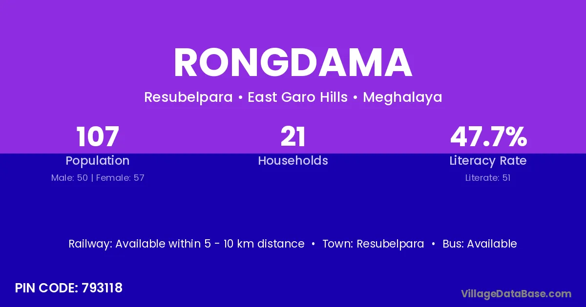 Resubelpara is the nearest town to Rongdama village for major economic activities