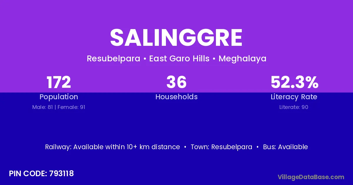Resubelpara is the nearest town to Salinggre village for major economic activities