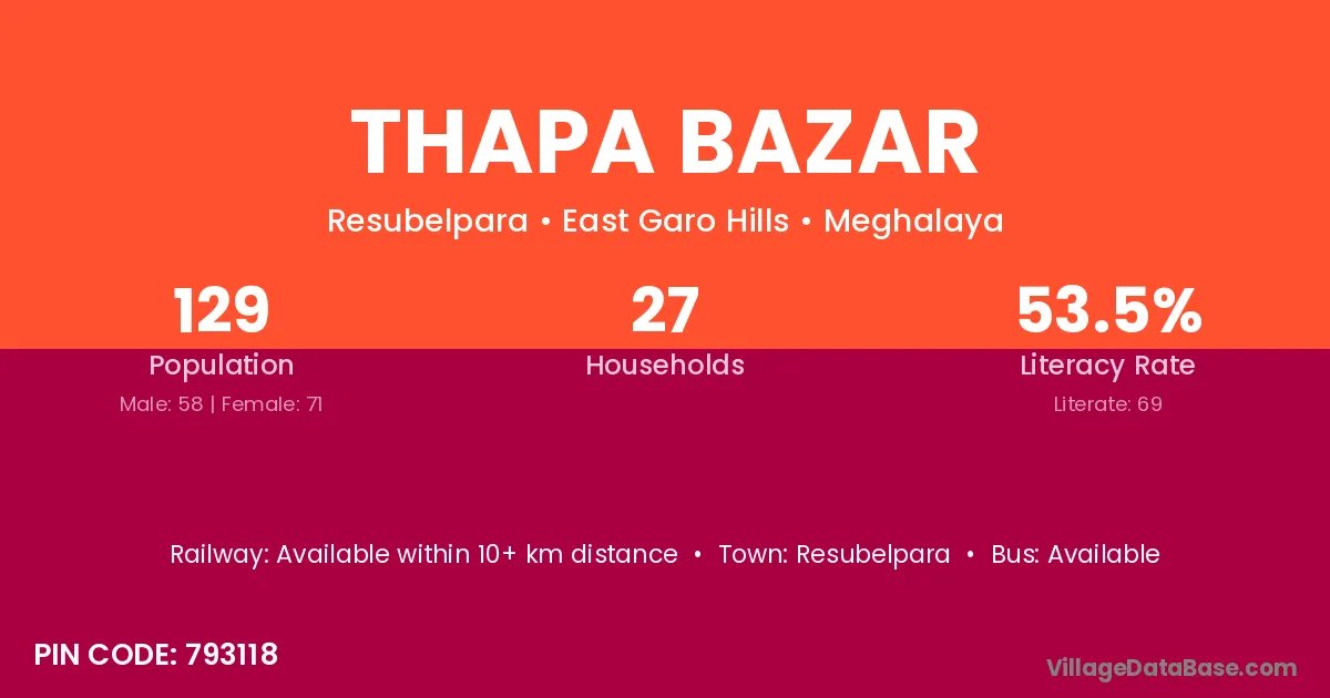 Thapa Bazar village has a total population of 129 people, of which 58 are males and 71 are females.