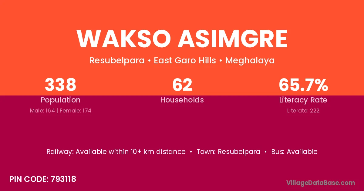Resubelpara is the nearest town to Wakso Asimgre village for major economic activities