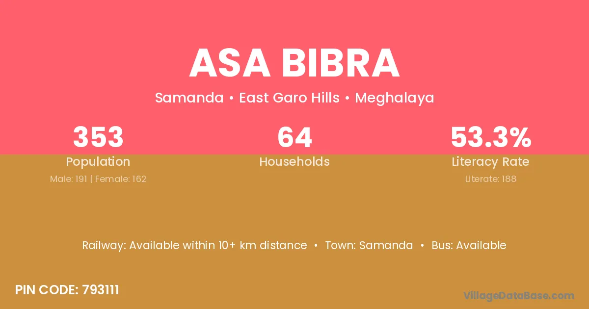 According to Census 2011 information, the village code of Asa Bibra village is 793111.