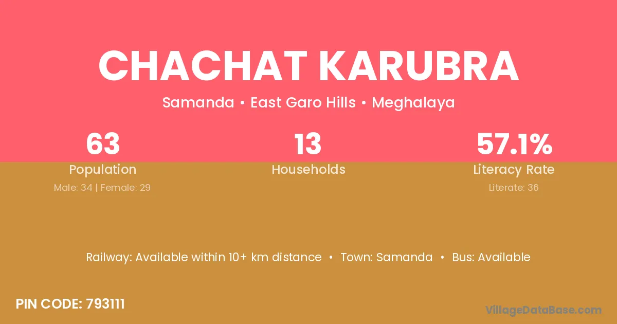 Samanda is the nearest town to Chachat Karubra village for major economic activities