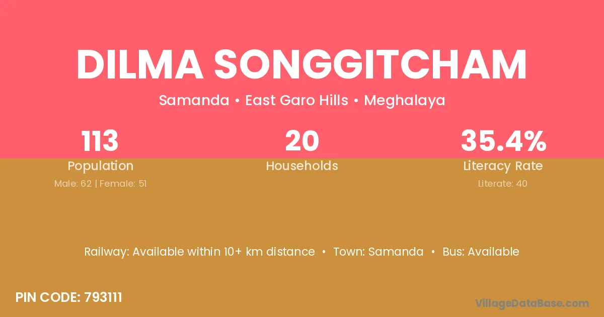 Dilma Songgitcham village has a total population of 113 people, of which 62 are males and 51 are females.