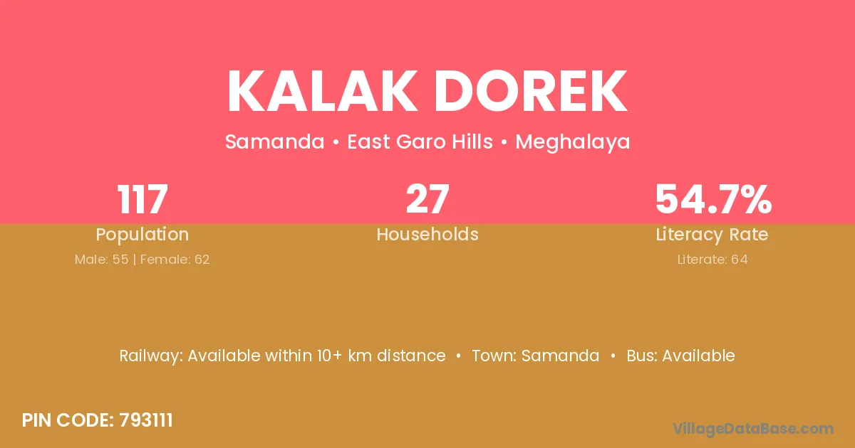 According to Census 2011 information, the village code of Kalak Dorek village is 793111.