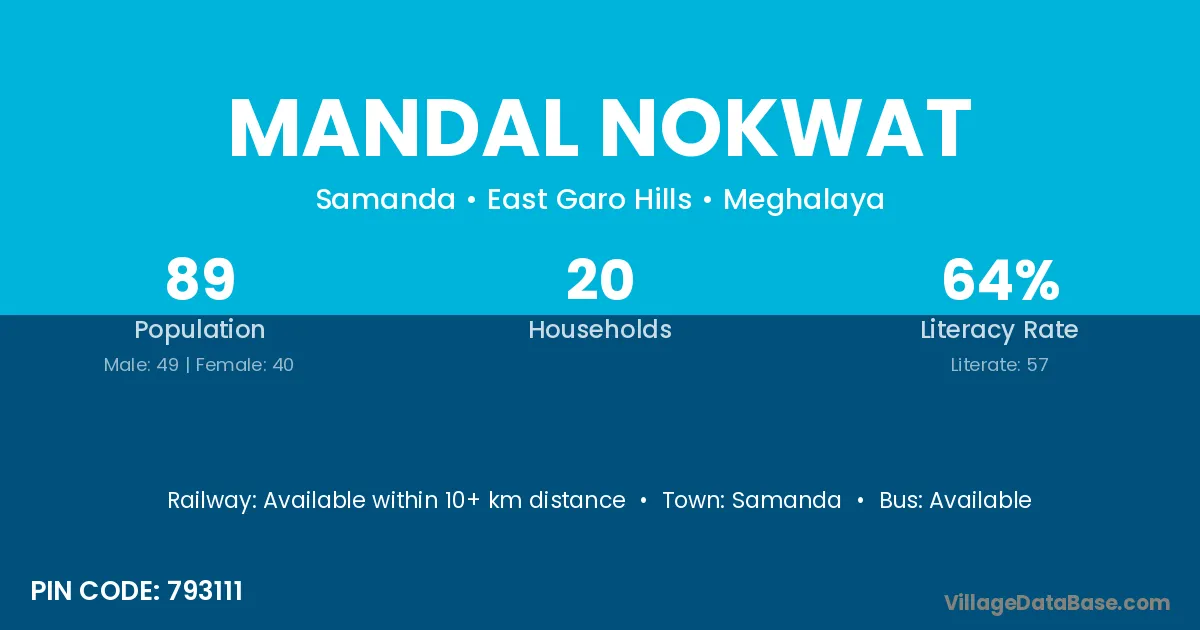 Samanda is the nearest town to Mandal Nokwat village for major economic activities