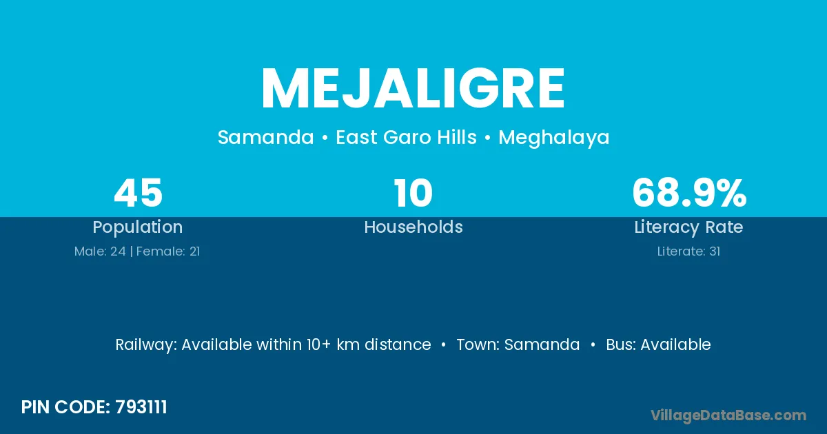 Samanda is the nearest town to Mejaligre village for major economic activities