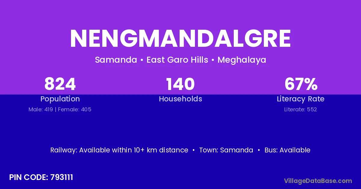 Samanda is the nearest town to Nengmandalgre village for major economic activities