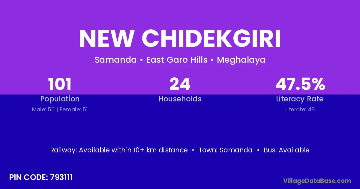 New Chidekgiri village has a total population of 101 people, of which 50 are males and 51 are females.