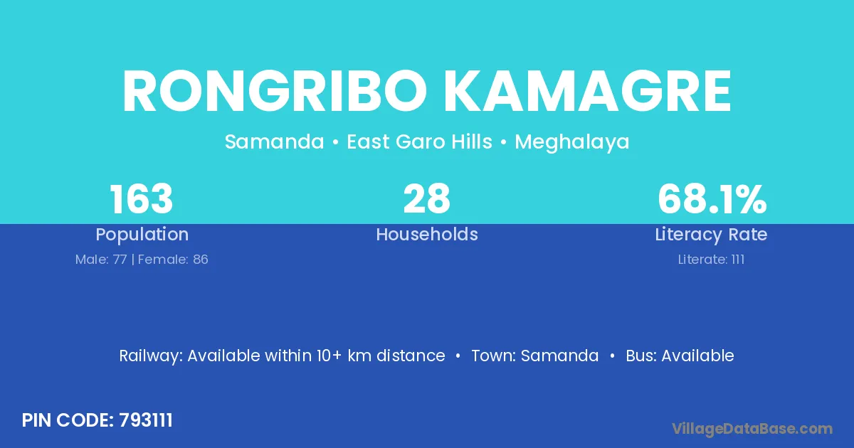 According to Census 2011 information, the village code of Rongribo Kamagre village is 793111.