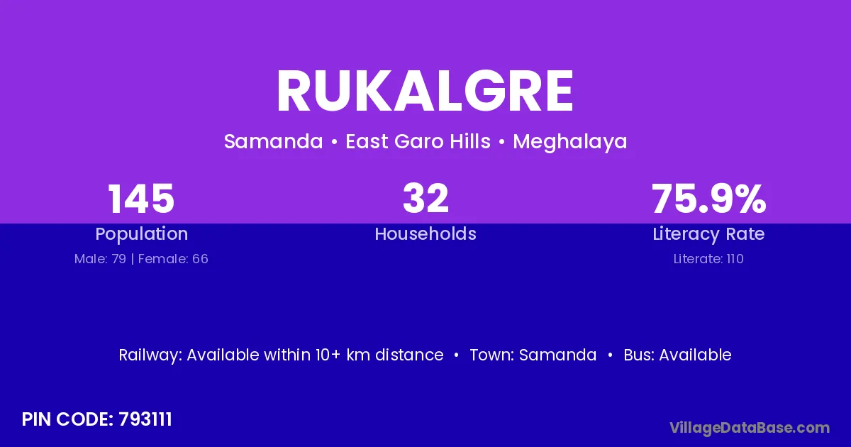 According to Census 2011 information, the village code of Rukalgre village is 793111.