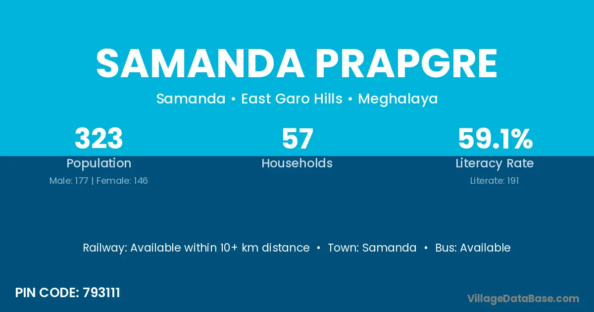 According to Census 2011 information, the village code of Samanda Prapgre village is 793111.