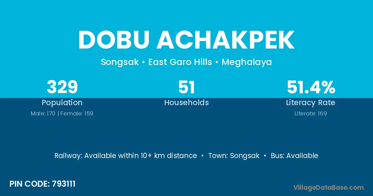 Dobu Achakpek village has a total population of 329 people, of which 170 are males and 159 are females.