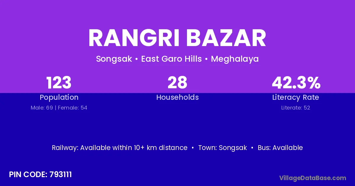 Songsak is the nearest town to Rangri Bazar village for major economic activities