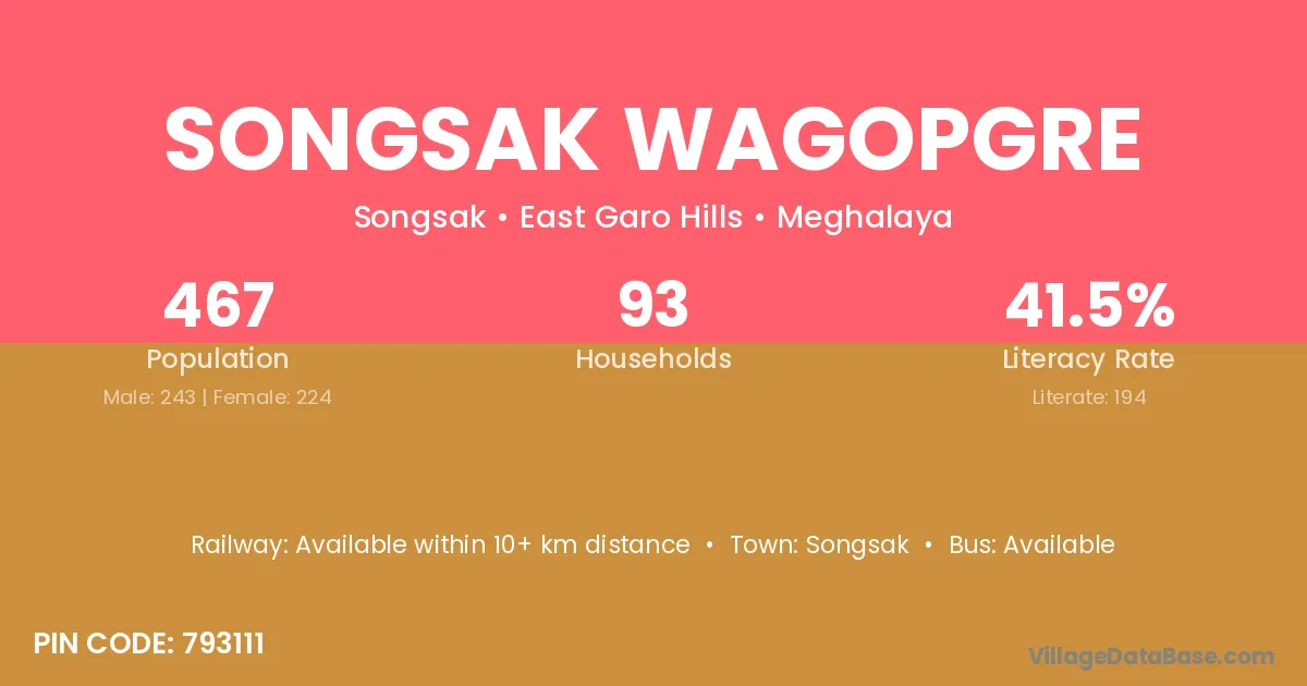 Songsak Wagopgre village has a total population of 467 people, of which 243 are males and 224 are females.