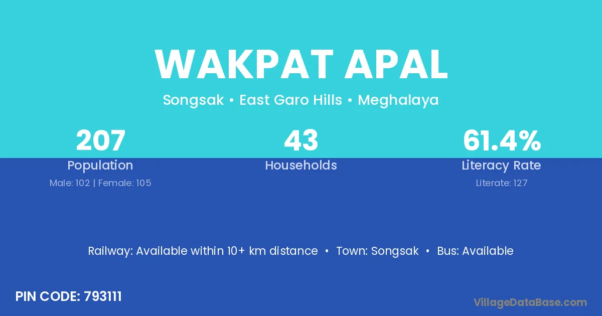 Wakpat Apal village has a total population of 207 people, of which 102 are males and 105 are females.