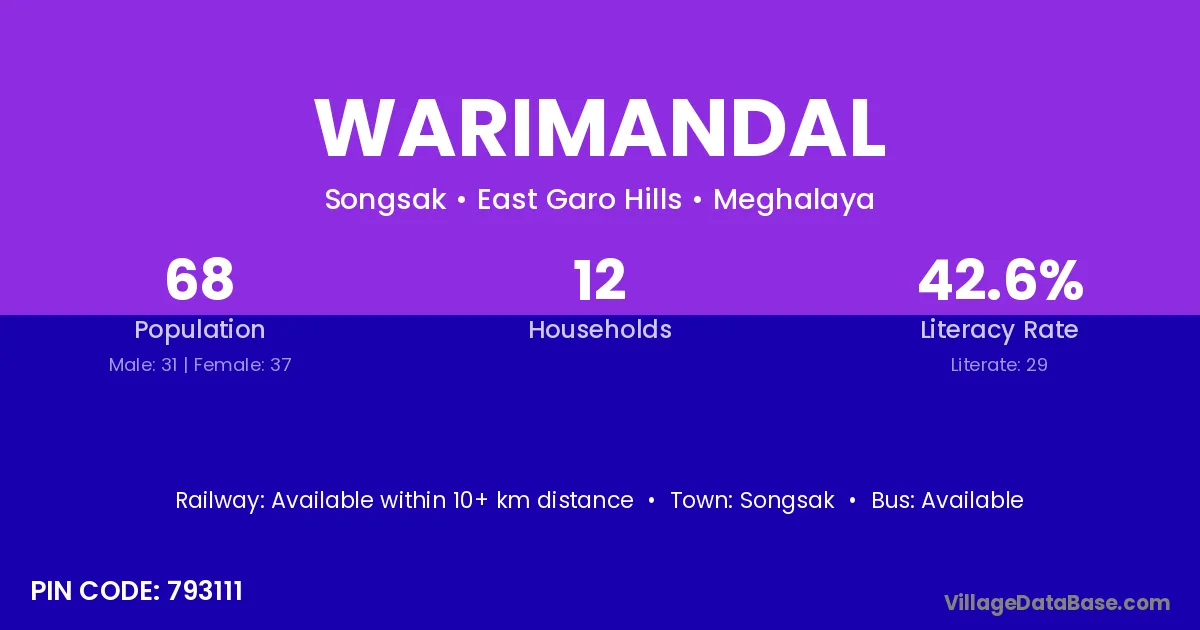 According to Census 2011 information, the village code of Warimandal village is 793111.