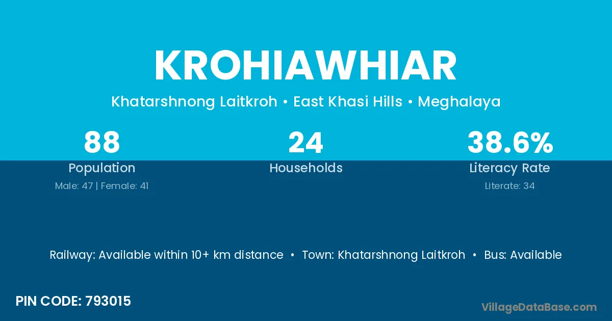 Khatarshnong Laitkroh is the nearest town to Krohiawhiar village for major economic activities