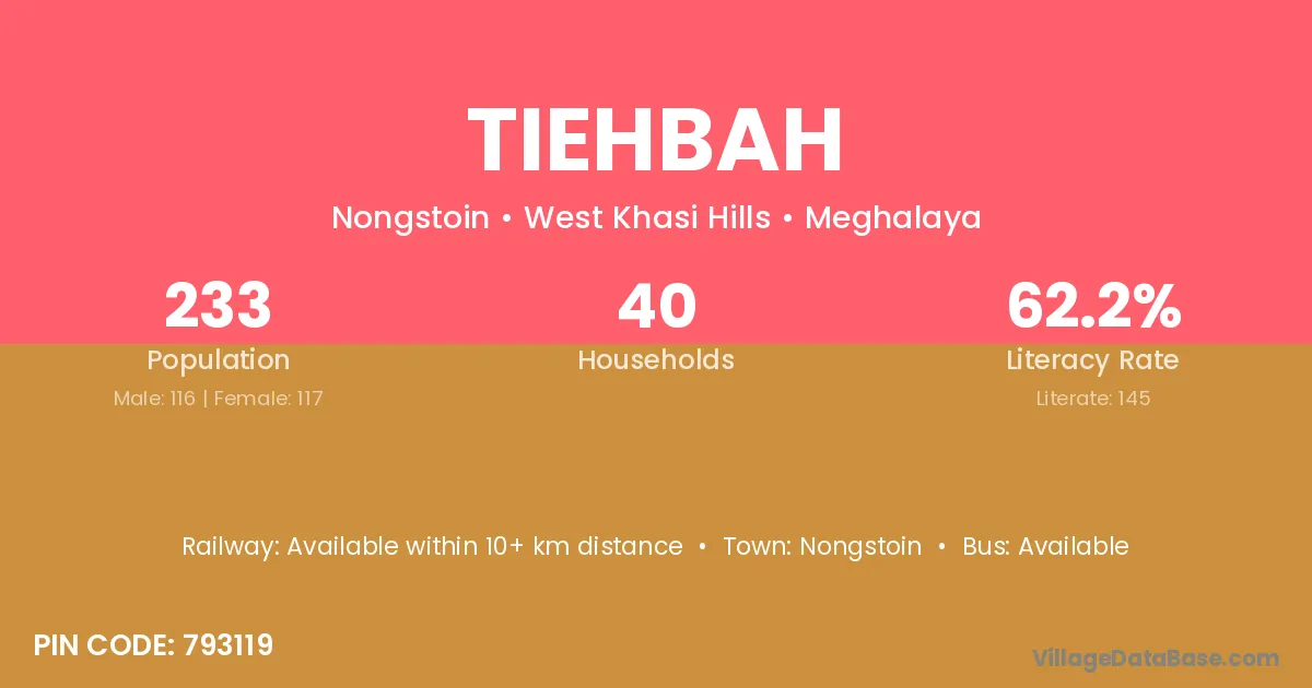 According to Census 2011 information, the village code of Tiehbah village is 793120.