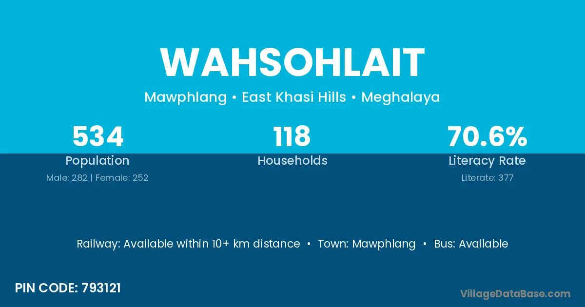 Wahsohlait village has a total population of 534 people, of which 282 are males and 252 are females.