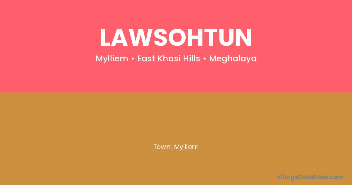 Lawsohtun village is located in the Mylliem Subdivision of the East Khasi Hills district in Meghalaya .